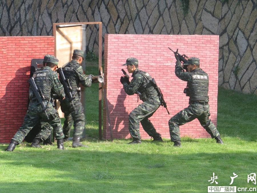 針對(duì)房屋、飛機(jī)、路面交通工具等復(fù)雜條件下的突入戰(zhàn)斗實(shí)彈射擊演練(央廣網(wǎng)記者 陳庚 攝)