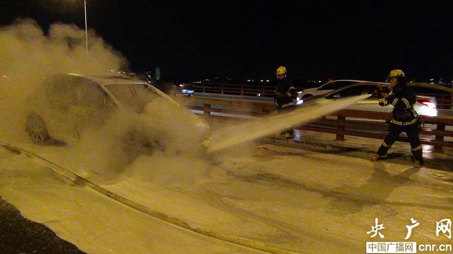 央廣網(wǎng)廈門8月21日消息(記者 陳庚 通訊員 陳榮亮 李嘉城)今晚19時25分許,廈門海滄大橋出島方向,一輛轎車在行駛中起火燃燒,汽車瞬間就少成了“火車”,所幸司機快速逃生,火災(zāi)沒有造成人員傷亡。事故發(fā)生時正值交通高峰期,橋面上車輛擁堵,廈門消防特勤一中隊官兵只得通過橋上的應(yīng)急車道趕赴事故現(xiàn)場。起火轎車在海滄大橋出島方向中段,消防官兵到達(dá)現(xiàn)場時,轎車已經(jīng)處于猛烈燃燒階段,車頭部分被大火籠罩,車廂內(nèi)也已經(jīng)被引燃,火勢已經(jīng)快燒到轎車右側(cè)油箱,整輛轎車成了“火車”,人員根本無法靠近,橋面上兩個車道被堵,大量汽車無法通行。根據(jù)現(xiàn)場情況,消防官兵對現(xiàn)場進行警戒,同時利用消防車出泡沫,向起火轎車噴射。10分鐘后,轎車的明火被撲滅。隨后,消防官兵將起火轎車的引擎蓋撬開,向發(fā)動機內(nèi)部射水冷卻。19時45分,火災(zāi)被完全撲滅。在事故現(xiàn)場約10米處,停著一輛轎車,據(jù)了解,起火轎車曾與前方車輛追尾,司機下車查看后,發(fā)現(xiàn)車頭冒煙起火,隨后很快蔓延燃燒。
