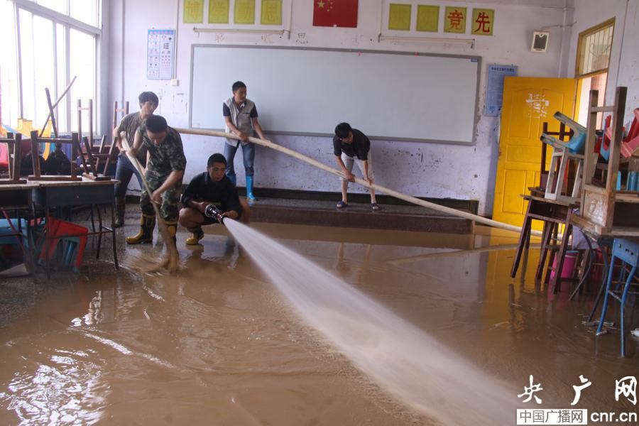 巫溪縣消防大隊(duì)官兵一大早就趕到了學(xué)校,消防官兵首先對(duì)學(xué)校食堂、教室、宿舍進(jìn)行了清洗。記者看到,消防官兵沖刷過的地面比原來干凈了許多,消防官兵和學(xué)校工作人員正拿著掃把和水槍,在教室內(nèi)一邊沖洗一邊刷地,將教室一間一間的沖洗干凈。