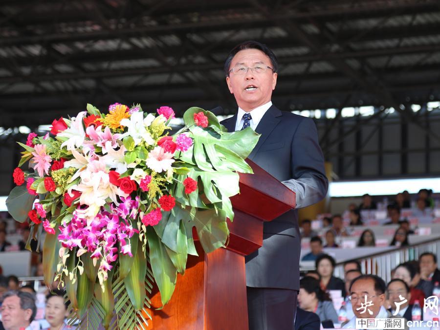 中央祝賀團團長、國家民委黨組副書記、副主任李昭致辭(央廣網記者 張雷 攝)
