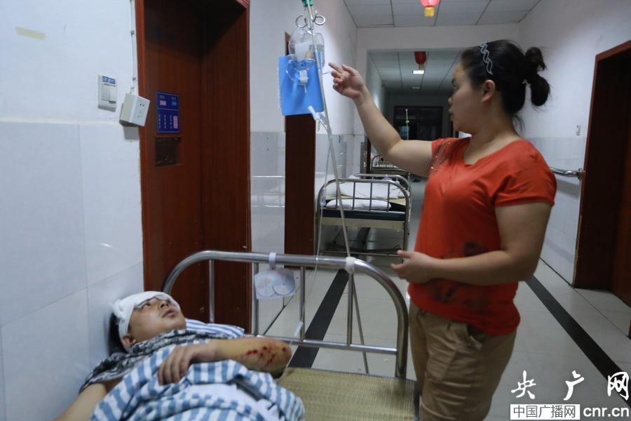 傷者親人在醴陵中醫(yī)院進行護理 (央廣網發(fā) 王海迪 攝)