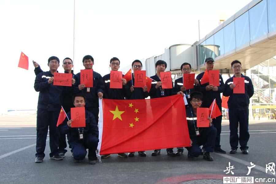 一整天的揮汗如雨,小伙子們順利完成了全部定檢任務(wù),在工作結(jié)束后,大家拿著寫滿祝福的紅紙站在國旗下合影留念。“國慶節(jié)到了,我們會認(rèn)真做好每一架飛機客艙的檢查和維修,用最棒的客艙環(huán)境迎接旅客,用出色工作業(yè)績?yōu)樽鎳I(xiàn)禮!”車間團支部書記陳峰自信地說。