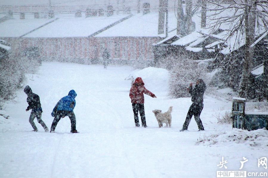 大雪中兒童在嬉戲(央廣網(wǎng)發(fā) 包旭民 攝)