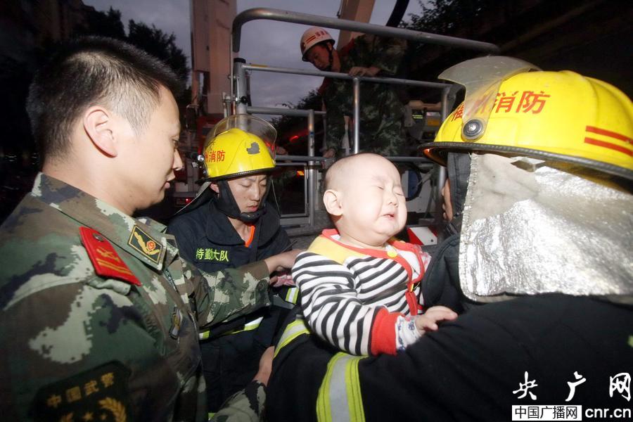 據(jù)街道社區(qū)工作人員介紹,4號樓406室,5號樓204室,兩對母子被濃煙圍困在樓頂,兩名孩子都剛滿月,另外3號樓一名80多歲的老太太被困在家中,如不及時救援,隨時可能危及到孩子和老人的生命安全。現(xiàn)場指揮部得知這一情況后,一邊調(diào)集90米舉高車從火場外圍營救被困群眾,一邊火速組織10個搜救小組深入燈飾城內(nèi)部和三棟居民樓,挨家挨戶搜救并疏散被困人員。為確保不遺漏任何一名群眾,指揮部先后5次組織搜救力量進(jìn)行反復(fù)搜救疏散。截止當(dāng)天下午4時左右,消防部門共從居民樓內(nèi)營救出45名被困群眾,疏散286人。下午5時50分左右,火災(zāi)被撲滅。