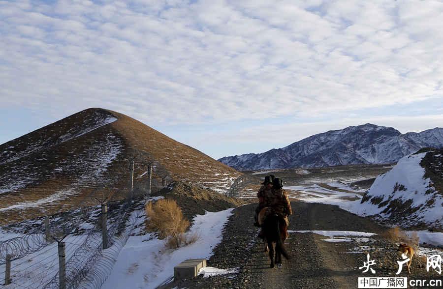 11月底的塔克什肯已是銀裝素裹,最低氣溫已達到零下35度。有的邊境地區(qū)已被大雪覆蓋,道路不通。為加強邊邊境管控,防止發(fā)生涉外問題,塔克什肯邊防連組織巡邏分隊乘馬對中蒙邊境實施巡邏。官兵們在邊境線上時而騎馬穿越蘆葦叢,時而牽馬通過被雪覆蓋的山溝,還不時停下來定點觀察,構(gòu)成一道靚麗的風景線。