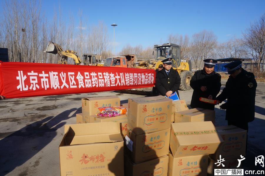 北京順義集中銷毀罰沒銷毀食品50箱(央廣網記者 李文蕊 攝)