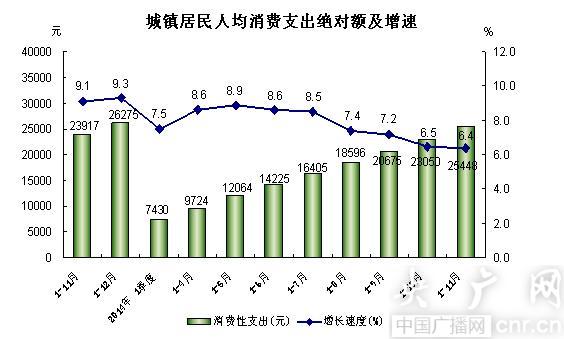 城鎮居民人均消費支出絕對額及增速(央廣網記者 李文蕊 攝)
