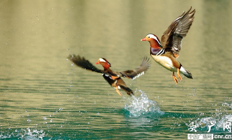 央廣網銅仁1月2日消息(記者王珩 孟海)元旦期間,在銅仁市碧江區,天氣逐漸轉冷,在國家濕地公園——天生橋大峽谷里,成百上千的野鴛鴦,成雙成對在快樂的覓食、嬉水、呈現出一幅自然和諧的畫卷,讓游人驚喜不己,成為冬日新年一景。