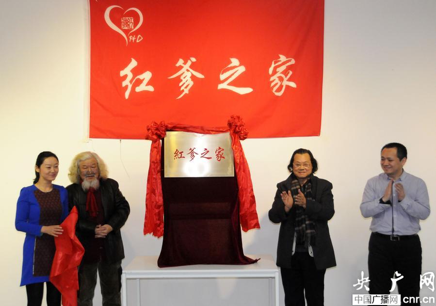著名藝術家薛榮萍(左二)、資深媒體人魏光朗、(左三)和青年代表北京大學牛力博士(右一)、中國建設銀行總行杜楠副處長為“紅爹之家”揭牌(央廣網記者 李單 攝)