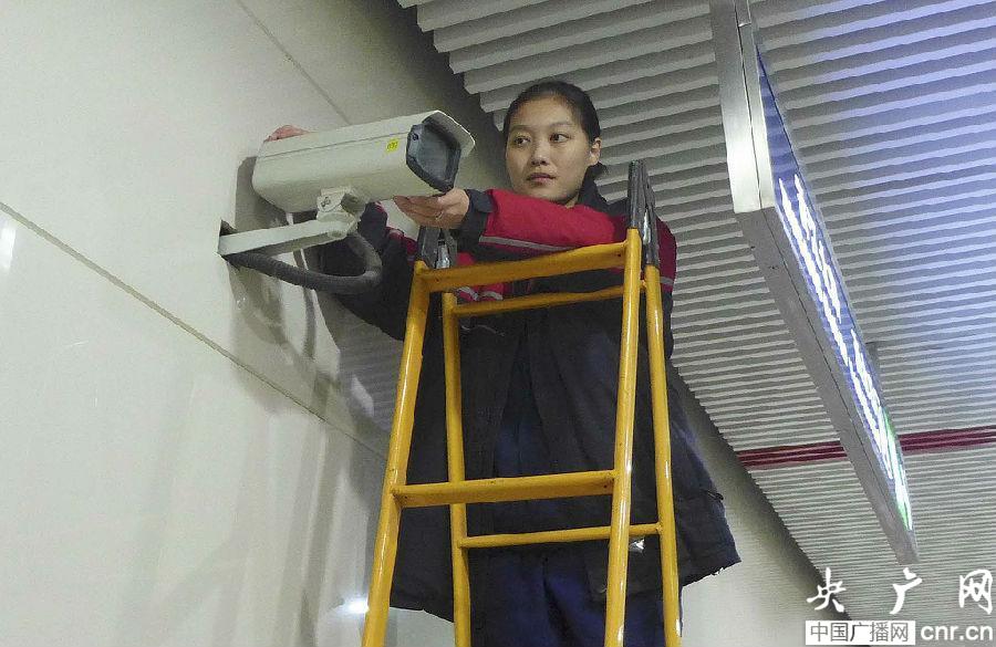 員工正在調整車站攝像機 北京地鐵供圖(央廣網記者 李文蕊 攝)