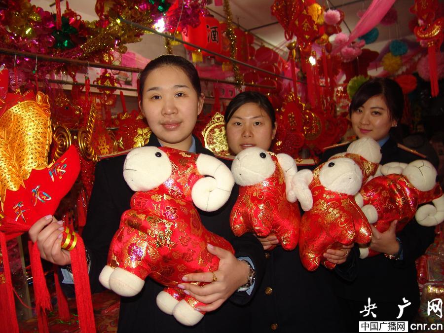 央廣網(wǎng)長沙2月9日消息(記者鄧文輝 通訊員孫豪 薛題泰攝)羊年春節(jié)近,送飾品羊等忙。2月9日,湖南懷化火車站休班的女客運(yùn)員,正在為節(jié)日當(dāng)班的農(nóng)民工購買飾品綿羊等年貨。佳節(jié)近,懷化站有的職工自發(fā),為過年當(dāng)班的農(nóng)民工送飾品、年畫、燈籠、春聯(lián)、窗花、水餃等,也為車站“為農(nóng)民工春節(jié)送溫暖”活動,增添喜慶、溫暖、濃濃“年味”。