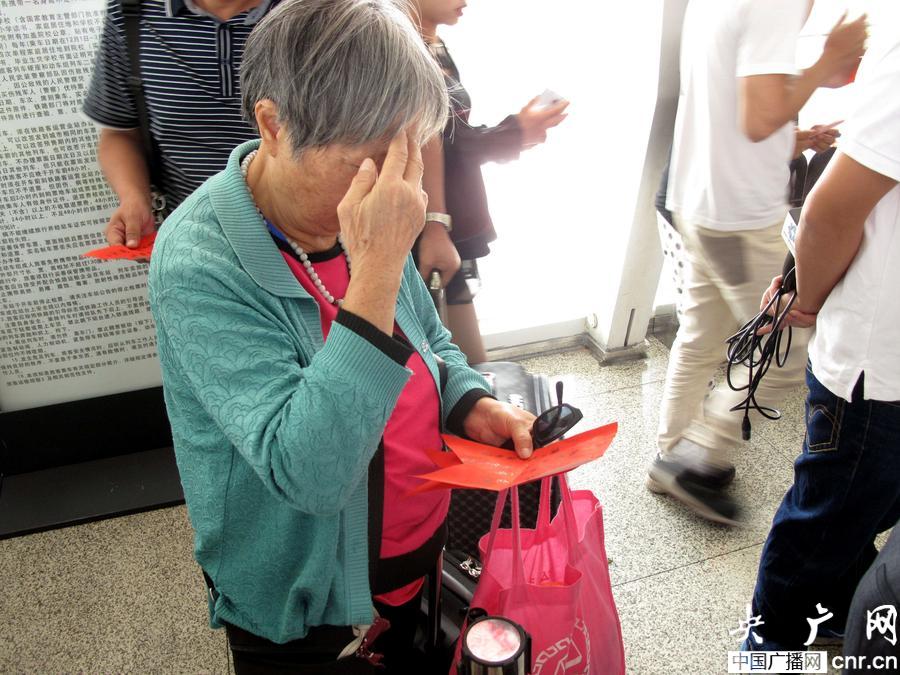 旅客正在猜拿到的燈謎(央廣網發 吳媚苗 攝)