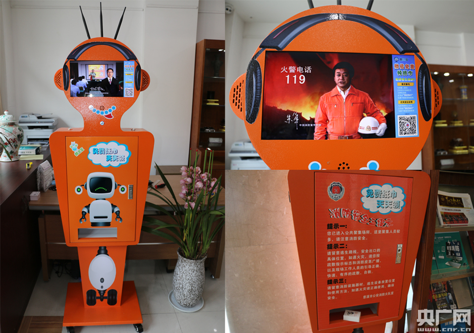 央廣網(wǎng)寧波5月15日消息(記者曹美麗 通訊員馬文文)近日,寧波慈溪市民驚訝的發(fā)現(xiàn):在一些商場(chǎng)、超市出現(xiàn)了一批卡通造型的消防機(jī)器人。機(jī)器人的頭部是一個(gè)LED顯示屏,不斷播放消防宣傳片;而在機(jī)器人頭部下方有個(gè)微信二維碼,只要你用手機(jī)掃一掃并發(fā)送短信,機(jī)器人就會(huì)送你一包餐巾紙。原來(lái),這是當(dāng)?shù)貫榧訌?qiáng)消防宣傳而推出的消防宣傳機(jī)器人。