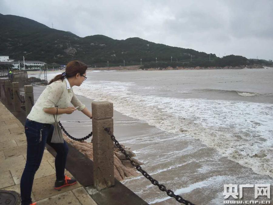 今天下午,記者分別來到寧波市象山縣松蘭山旅游景區和石浦漁港采訪。受臺風外圍影響,沿海風力正在加大。在松蘭山景區,安保人員正在拉警戒線,安全員正在沿線巡邏,勸阻游客下海。
