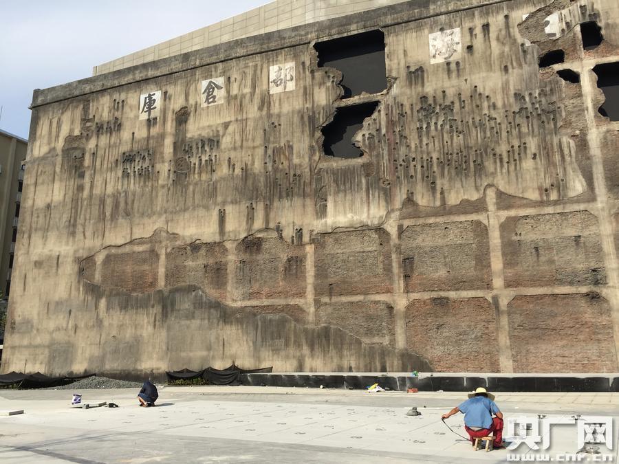 目前修復完成的“西墻”,共保留呈現了1937年四行保衛戰中日軍炮擊形成的8個主要的炮彈孔和430余個槍眼彈點。(央廣網發 傅聞捷 攝)