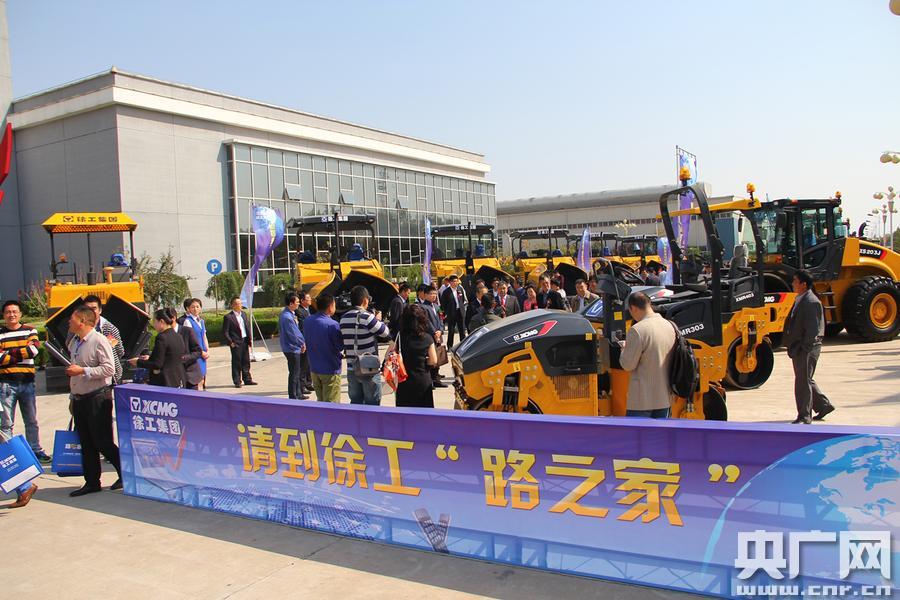 領(lǐng)導(dǎo)、嘉賓攜手客戶參觀徐工成套筑養(yǎng)護(hù)機(jī)械產(chǎn)品(央廣網(wǎng)記者 楊守華 攝)