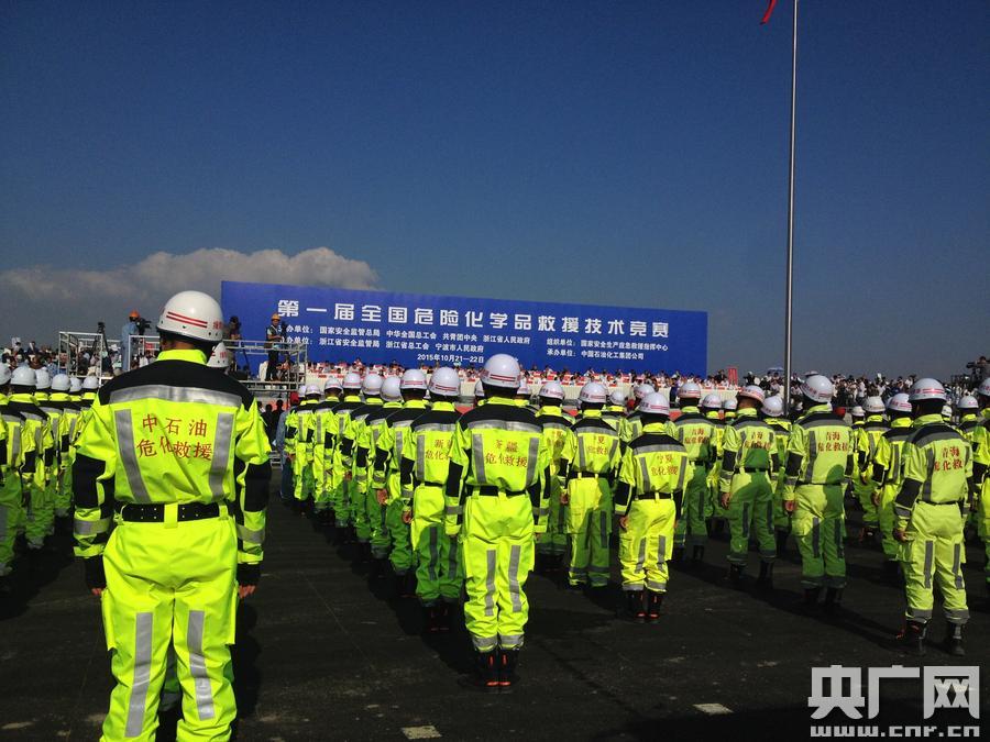 央廣網(wǎng)寧波10月22日消息(記者 李佳)為全面檢驗(yàn)危險(xiǎn)化學(xué)品應(yīng)急救援隊(duì)伍的技戰(zhàn)術(shù)水平,切實(shí)提高全國危險(xiǎn)化學(xué)品應(yīng)急救援隊(duì)伍指揮決策、組織協(xié)調(diào)、快速反應(yīng)、科學(xué)施救、有效處置的能力,促進(jìn)企業(yè)提高第一時(shí)間現(xiàn)場應(yīng)急處置能力,10月21日至22日,由國家安全監(jiān)管總局、中華全國總工會(huì)、共青團(tuán)中央和浙江省人民政府聯(lián)合主辦,中國石化承辦的第一屆全國危險(xiǎn)化學(xué)品救援技術(shù)競賽在位于寧波的中國石化鎮(zhèn)海煉化分公司舉行。