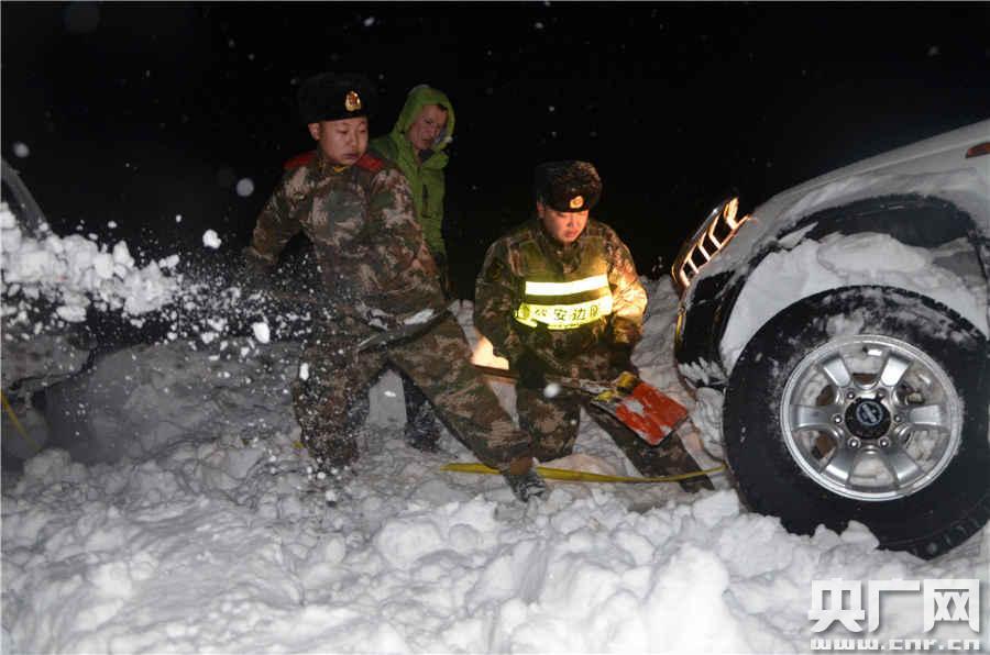 邊防官兵清理被困車輛積雪(歐天舒攝)
