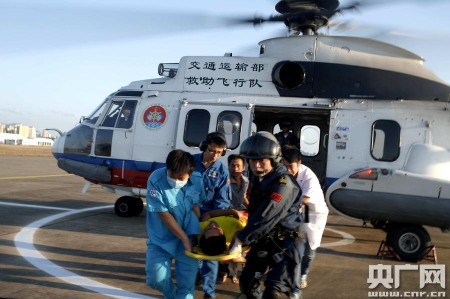 央廣網三亞1月6日消息(記者 吳媚苗 通訊員 路瑞霞 陳鈿琴)2016年1月5日,交通運輸部南海第一救助飛行隊B-7136救助直升機在三亞市西南約55海里處成功救助1名腹痛至昏迷的漁民。