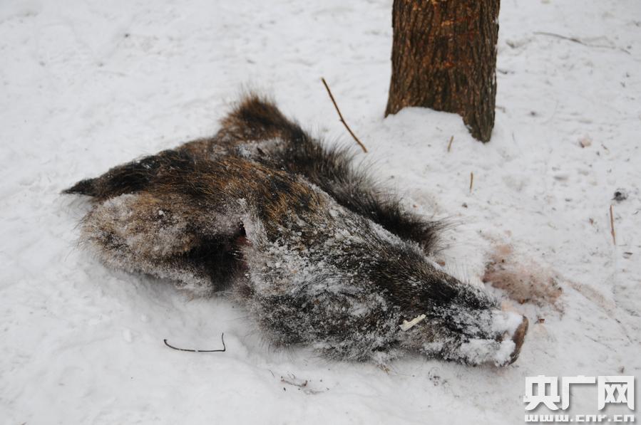 2015年12月14日至19日,白石山林業局組織了千余人次進行的清山、清套行動,避免東北虎在林區受傷,保護東北虎的棲息地。在清山清套過程中,護林員意外發現了兩頭被東北虎捕食的野豬殘體。野豬殘體一大一小,相隔也就10多米遠。大野豬都快被掏空了,就剩下一層皮,后腿大部分已經消失不見,僅留下部分骨頭。小野豬被吃了一半。護林員還發現,在勝利河林場出現疑似東北虎追趕一群狍子的腳印。