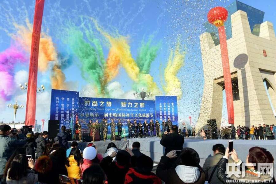 新疆霍爾果斯第二屆中哈國際冰雪文化旅游節(jié)開幕(王志強(qiáng)攝)