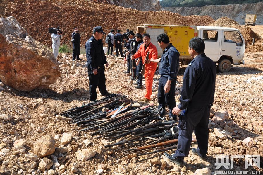 央廣網文山1月18日消息(記者李騰飛 通訊員蔣妍娟 何文亮)為徹底消除槍爆隱患,本月15日,云南省丘北縣公安局聯合縣安監局、縣市場監督局,在丘北縣錦屏鎮小桂革三鑫石料場空地集中銷毀了一批槍爆物品和管制刀具,歷時達5小時。