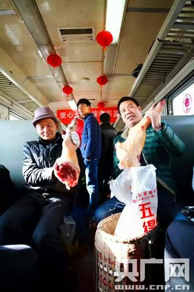 央廣網西安1月21日消息(記者劉濤 通訊員陳燕 丁毅)遠山含黛,綠水蜿蜒,還有不時閃過的麥田,乘坐在漢中至陽平關8361/8362次“小慢車”上,望著窗外,滿眼盡是這樣秀麗的景象。但最吸引旅客的目光,卻是車廂內迎面襲來的喜慶年味。