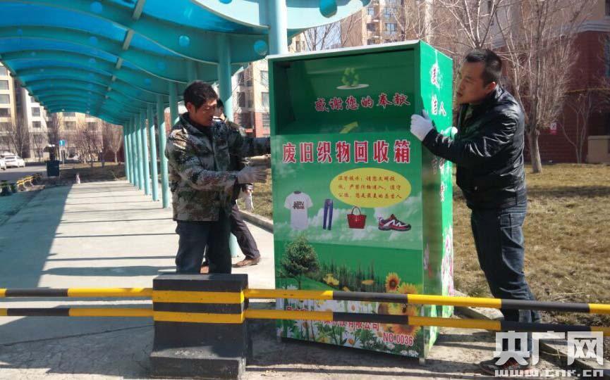 新疆昌吉市環保局宣教科科長高一豪介紹,在社區安置廢舊織物回收箱在全疆尚屬首例:“在社區安置廢舊衣物回收箱,它方便了我們社區居民對家庭存儲空間進行提升,也解決了我們對廢舊衣物處理的困擾,提供了渠道!