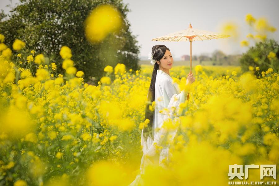 央廣網3月29日消息(記者謝元森) 遠遠望去,油菜花海里,一名身著白衣青衫的女子,發細如絲,長裙飄飄,或感受芬芳,任清風徐來,或撫摸河水,任水波不興,美得讓人驚嘆,美得讓人折服。