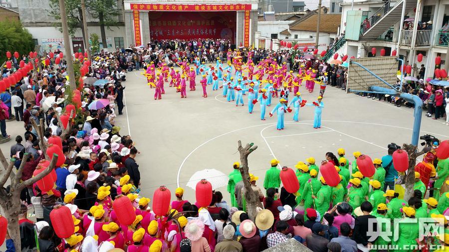 晉寧縣古城村的“米線節”,始于清代光緒年間“迎城隍趕廟會”活動,至今已有300多年的歷史,本是當地百姓通過迎接文武城隍來祈求風調雨順、求保安居樂業的一項傳統民俗活動。因為廟會當天,家家戶戶必以米線待客,管夠管飽,2012年正式更名為“米線節”。2015年,下方古城“三月十三民間民俗米線節”被列入昆明市非物質文化遺產保護名錄。