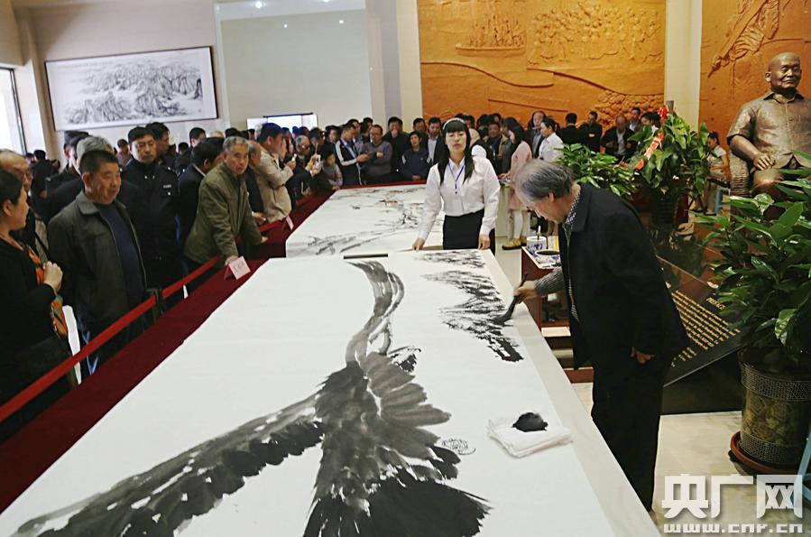 央廣網4月20日消息(記者王志達) 為加強文化交流,促進京津冀一體化發展,4月17日蠡縣在梁斌黃胄紀念館舉辦“津蠡文化對接”書畫筆會,來自天津市文聯、美協、書協的學者和書畫名家揮毫潑墨、現場作畫,吸引了眾多書畫愛好者學習觀看。