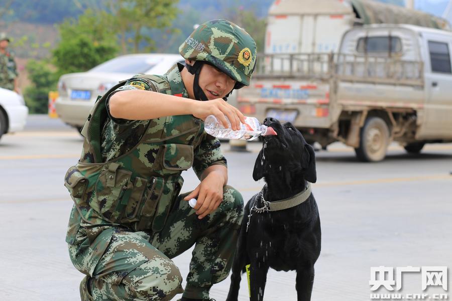 訓導員為無言的“戰友”道臣喂水(攝影 黃毅誠)