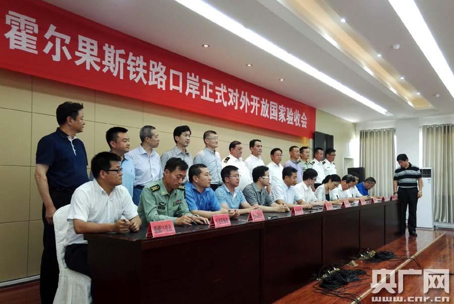 驗收組一致認為,霍爾果斯鐵路口岸檢查檢驗場所及配套設施已經建成,現場監管條件基本符合有關規定,查驗單位業務用房滿足查驗工作需要;人員能夠承擔口岸對外開放后的檢查檢驗任務;有關軍事設施保護措施已落實到位,驗收組同意霍爾果斯鐵路口岸對外開放通過國家驗收。