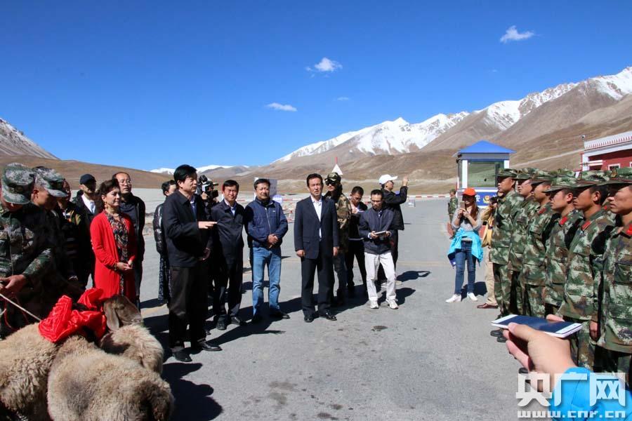 央廣網紅其拉甫9月10日消息(記者張雷 通訊員肖龍)中國文聯文藝志愿服務團9月9日專程來到帕米爾高原海拔5100米的新疆邊防總隊紅其拉甫邊檢站前哨班看望慰問邊防官兵。
