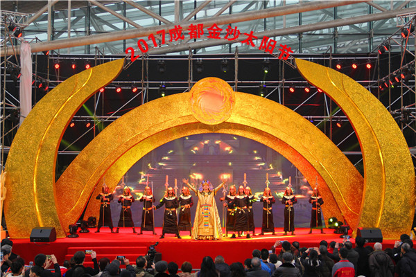 央廣網成都1月24日消息(記者賈宜超)1月23日晚,2017成都金沙太陽節在成都金沙遺址博物館正式拉開大幕。古埃及文物展、圖坦卡蒙面具和金字塔造型的大型燈組、開幕式演出等當天陸續和市民游客見面。而本屆太陽節將一共為市民游客獻上282場精彩演出。