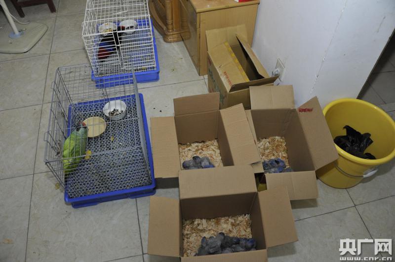 廈門海關查獲的已被孵化成鳥的鸚鵡(央廣網發 黃穎攝)