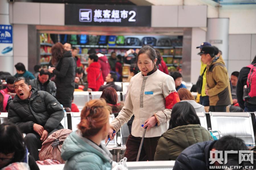 春運中的保潔員(汪亮 攝) -