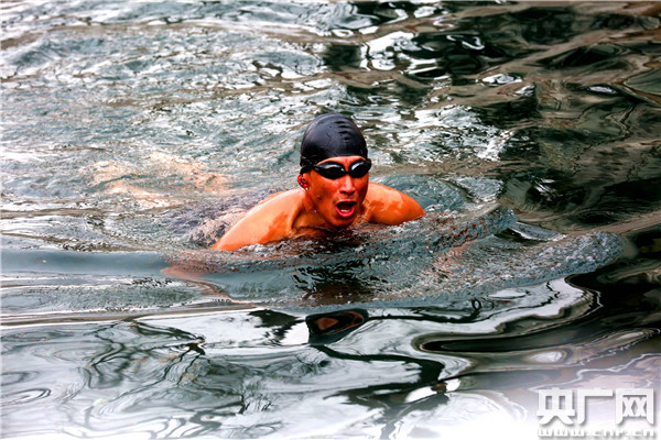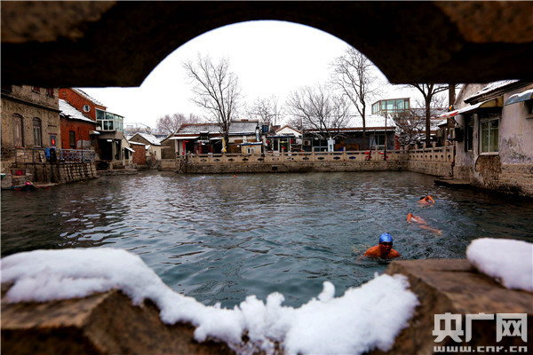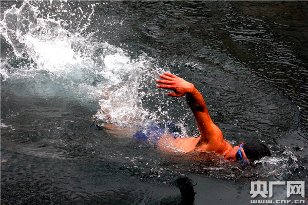 雪后游泳,肯定很爽。(央廣網(wǎng)記者劉海奎 攝)