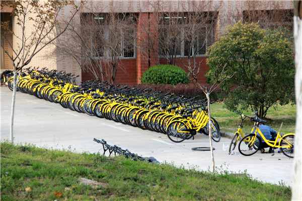 很多學生表示,共享單車的出現極大方便了他們的生活,但看到如此多小黃車“傷痕累累”,他們感到很心痛。