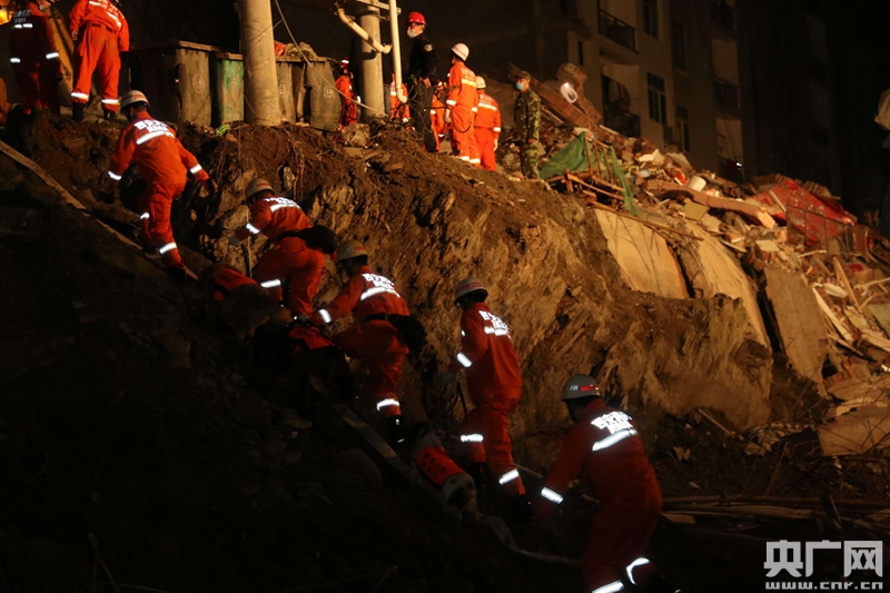 央廣記者(17日)22時進入救援現場,從現場救援指揮部獲悉,救援工作將連夜開展。由于救援空間狹小,救援比較困難,今晚更多的救援物資和設備將陸續運達。