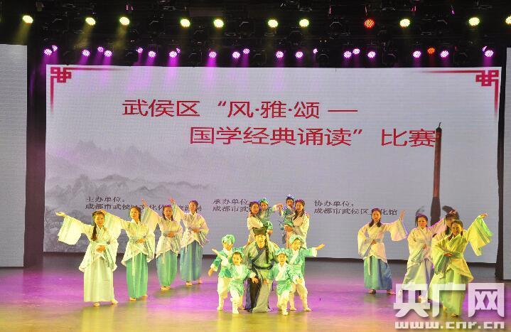 市民代表向全社會發起了以“悅讀·在路上”為主題的全民閱讀推介活動,并向發出了倡議:倡議每一位市民、每一個家庭、每一個單位、每一名黨員干部積極行動起來,把閱讀作為一種生活態度,一種工作責任,一種自覺習慣,一種精神追求,努力成為讀書學習的表率。在2016年書香武侯全民閱讀活動中,成都武侯區評選出10個書香之家和10名全民閱讀之星,并為獲得“書香之家”的家庭代表授予榮譽稱號。 “2017武侯區風·雅·頌國學誦讀”在武侯區人力資源和社會保障局楊睿誦讀的《人生》的追問中拉開帷幕。隨后,是簇橋街道帶來的《詩意花語》誦讀,在誦讀表演環節中,不論是一群可愛孩子帶來的《國學經典匯集》,還是身著漢服的大學生詩詞誦讀表演,都讓觀眾們掌聲不斷,直呼精彩。在誦讀方陣的誦讀感染下,現場眾多觀眾不禁跟著低吟淺誦,感受著東坡經典作品的魅力。在觀眾表演環節,從孩子到成人,從伙伴組團到家庭上場,誦讀一首首膾炙人口的經典,將活動氛圍推向高潮。 據悉,風·雅·頌國學誦讀活動是武侯區圖書館繼打造《書·閱》電臺、以“陳岳先生講好家訓好家風”系列講座為主線的行知講堂、panda胖噠課堂三大文化惠民品牌之后,為進一步拓展全民閱讀的深度和廣度,加強公共文化服務體系建設,為服務廣大讀者的又一項新舉措。旨在通過開展經典誦讀、文字喚起沉淀的情感,將文字轉以情帶聲、以聲傳情,盡顯誦讀的無窮的語言魅力。讓廣大讀者從優秀的作品中汲取營養,開闊視野,豐富知識,提高文化底蘊和文化修養。 近年來,武侯圖書館以“書香洋溢武侯、文化引領發展”為理念,通過開展全民閱讀《書·閱》電臺和行知講堂系列講座活動,傳播閱讀理念,倡導全民閱讀,傳承文明品質,提升文化品位,豐富文化生活,讓閱讀成為廣大市民的一種生活方式,大力培育和弘揚社會主義核心價值觀,展現武侯人特有文化內涵和良好人文風貌,為書香武侯、和諧武侯建設提供了強大精神動力和文化條件。