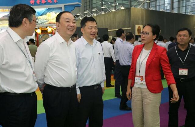 央廣網(wǎng)深圳5月11日消息(記者曾萍 楊振 通訊員張惠)第十三屆中國(深圳)國際文化產(chǎn)業(yè)博覽交易會今日開幕。中宣部常務副部長黃坤明,廣東省委常委、宣傳部長慎海雄蒞臨梅州展館,觀看廣東漢樂、廣東漢劇等非遺表演。梅州市委常委、宣傳部長張麗霞陪同參觀。