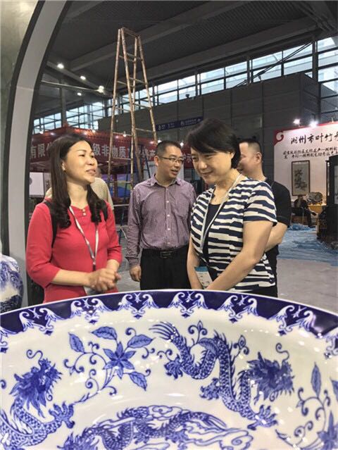 張麗霞在梅州館指導參觀時,勉勵企業(yè)加強對外交流和宣傳,不斷擴大梅州文創(chuàng)產(chǎn)品知名度。記者了解到,與前三屆相比,本屆梅州館還新增了各縣(市、區(qū))專屬文創(chuàng)展區(qū),全館以“古韻新聲·傳情客都”為主題進行設計,意取客家圍龍屋、梅江橋、足球之鄉(xiāng)、長壽之鄉(xiāng)品牌,注重突出客家文化精髓。同時,充分展示梅州文創(chuàng)藝術精華,重點展示獨一無二的縣域文創(chuàng)品牌。如:中國青花瓷之鄉(xiāng)·大埔的青花瓷系列、中國長壽之鄉(xiāng)·蕉嶺的長壽文化工藝及衍生品、廣東唯一富硒紫砂基地·興寧的富硒養(yǎng)生紫砂系列、中國第五大名石(豐順石)產(chǎn)業(yè)基地·豐順的葉臘石雕系列、中國石匠之鄉(xiāng)·五華的石雕系列,客家影視動漫、演藝娛樂、網(wǎng)絡文化、文化旅游、工藝美術、創(chuàng)意設計等領域的文化企業(yè)、文化產(chǎn)品和文化服務情況,以及客家特色文化產(chǎn)業(yè)發(fā)展項目。