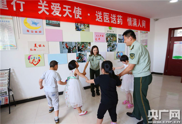 央廣網濱州5月26日消息(記者 林彥銀 通訊員 王志爽)5月25日下午,山東邊防總隊醫院的軍醫們走進濱州市濱城區彩虹胡社區看望星空家園啟音中心的特殊孩子們,為障礙兒童送去溫暖和關愛。
