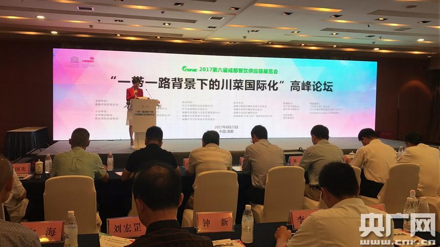 央廣網成都6月22日消息(記者韓民權)6月22日,2017第六屆成都餐飲供應鏈展覽會“一帶一路背景下的川菜國際化”高峰論壇在成都舉行。論壇以“一帶一路背景下的川菜國際化”為主題,30余家國內外商協會組織、院校、媒體、海外拓展企業、國際會展平臺及權威機構的代表人物匯聚一堂,共謀川菜國際化發展之路。