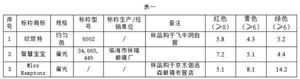而交通訊號透射比將直接影響兒童在佩戴太陽鏡時對于交通訊號燈的分辨能力,本次比較試驗中,有3件樣品的交通訊號透射比不符合測試要求(詳見表一)。