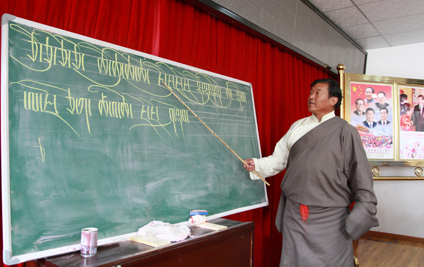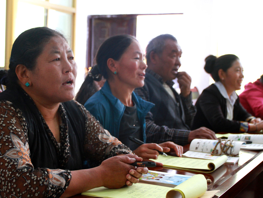 隨著朗朗書聲,來自江洛康薩社區(qū)5組的居民瓊達正在社區(qū)區(qū)委會里跟著社區(qū)里的中老年人在這里學(xué)習藏文。她說:“通過簡單的學(xué)習小到可以解決她們記個電話號碼、簽字這些日常所需,學(xué)好了更是能讀書提高自己。”