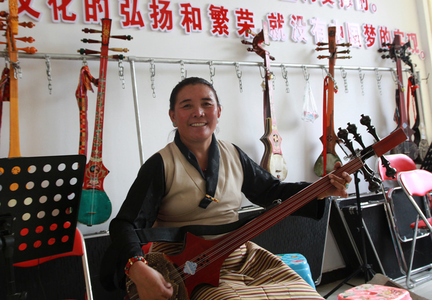 據(jù)了解,除了文化課以外,該社區(qū)針對老城區(qū)的現(xiàn)狀,還為社區(qū)居民準備了民俗活動中心,為社區(qū)里的人在婚慶等大喜事時免費給他們提供場所。此外還開辦了藝術(shù)課、教授扎念琴等藏族傳統(tǒng)樂器。次仁旺姆在這里學(xué)習扎念琴(六弦琴)已經(jīng)兩年多,她說:“大到70歲,小到30歲。現(xiàn)在最多時候有70號人,大家在這里彈琴、學(xué)舞心情十分愉悅!”