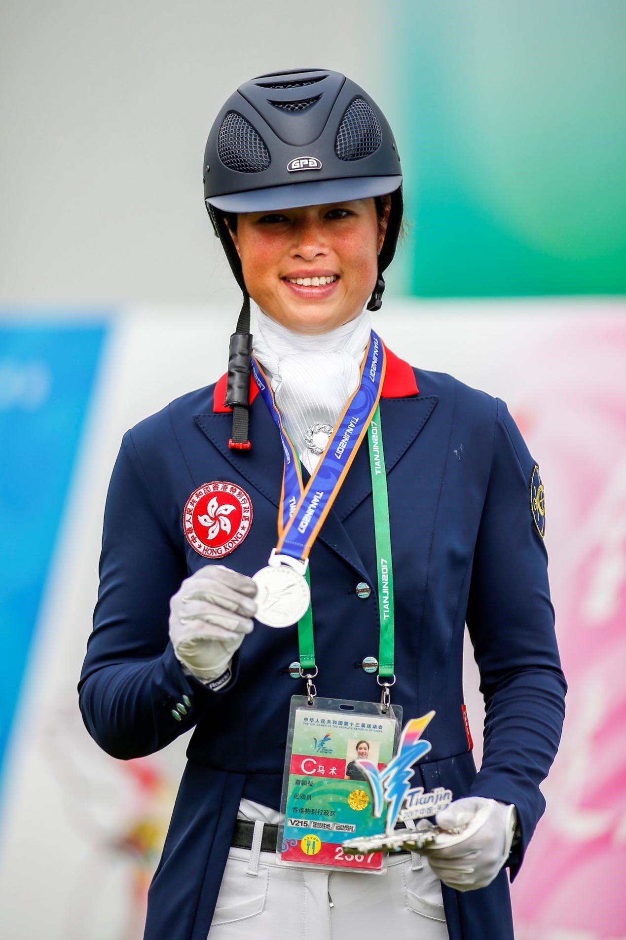 馬會馬術隊騎手蕭穎瑩在全運會馬術盛裝舞步個人賽奪得一面銀牌。