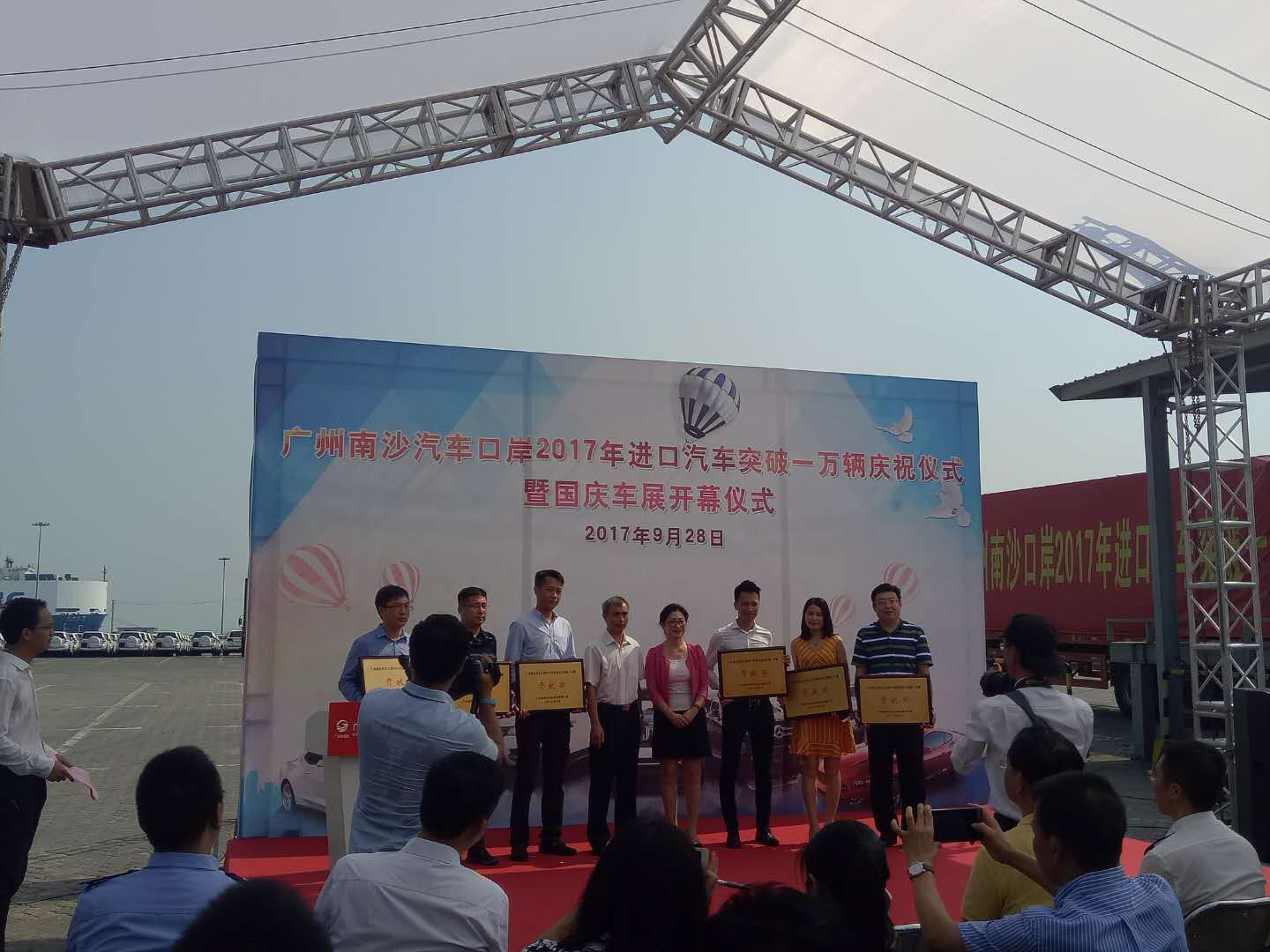 央廣網(wǎng)廣州9月28日消息(記者周羽 通訊員蘇小妹 鄭志珣)9月28日上午9時50分,隨著一輛賓利轎車從集裝箱卸車平臺緩緩卸下,南沙汽車口岸在正式通關(guān)運(yùn)營三年零一個月后,本年度進(jìn)口整車量首次突破萬輛大關(guān)。記者從廣州港集團(tuán)了解到,受益于廣東自由貿(mào)易試驗(yàn)區(qū)和平行進(jìn)口試點(diǎn)等政策紅利,南沙汽車口岸大力拓展和延伸進(jìn)口整車物流市場。9月28日,南沙汽車口岸2017年累計(jì)進(jìn)口整車數(shù)量達(dá)到10306輛,同比增長183%,遠(yuǎn)超去年全年進(jìn)口整車總量8284輛,創(chuàng)下年度進(jìn)口量歷史新高,成為華南最大的平行進(jìn)口汽車口岸、全國僅次于天津的平行進(jìn)口汽車第二大口岸。